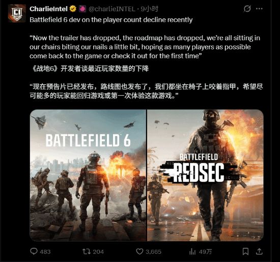 快回来玩吧!《战地6》团队“指甲都要咬断了”