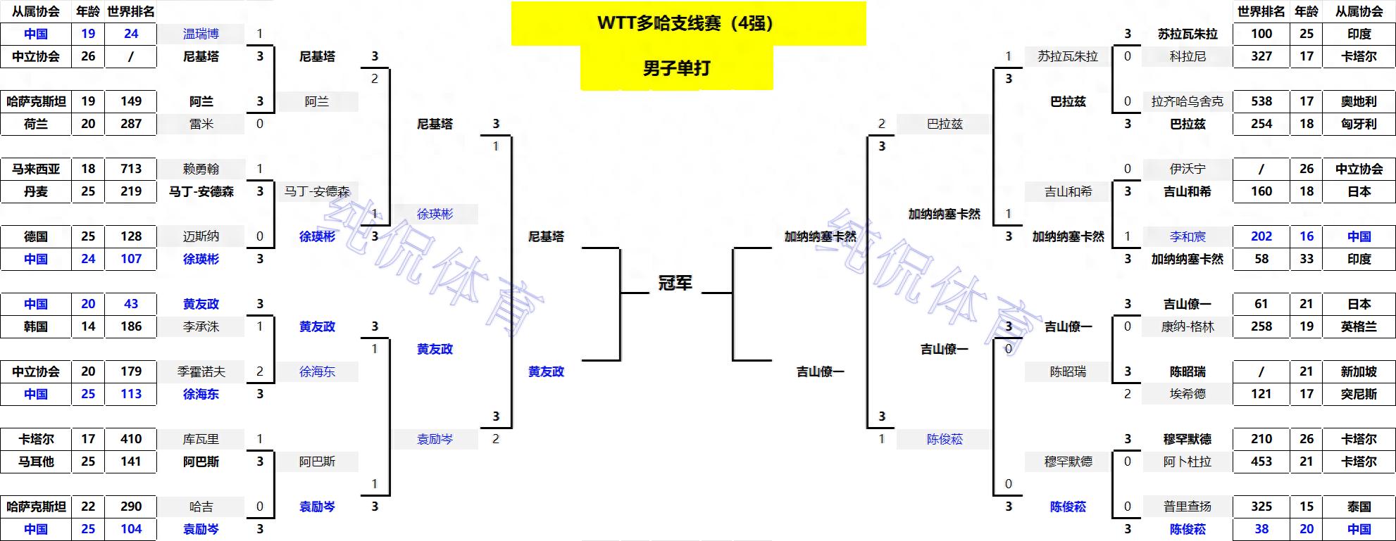 北京时间1月31日凌晨,2026年WTT多哈支线赛结束了倒数第二个比赛日的争夺,目前单打四强正式出炉!本人详细…