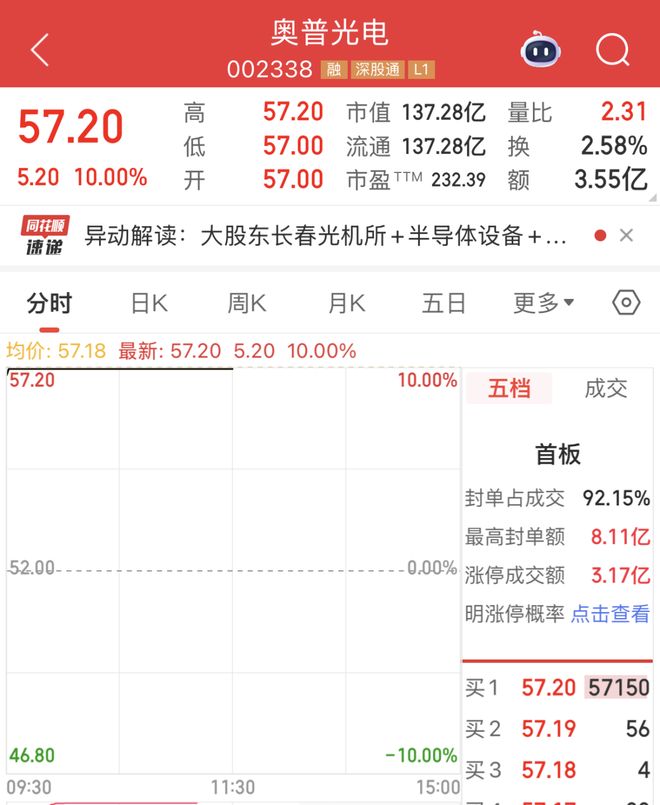 002338,秒速涨停!这个产业国产化不断提速,受益股曝光(名单),涨停,光学,个股,刻机,国产化,受益股,奥…