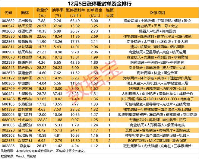 揭秘涨停 | 航天板块掀涨停潮,涨停,个股,封单,净卖出,龙洲股份,航天动力,航天板块