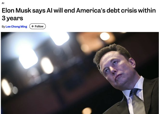 马斯克开「AI救国猛药」:3年解决美38万亿国债危机!