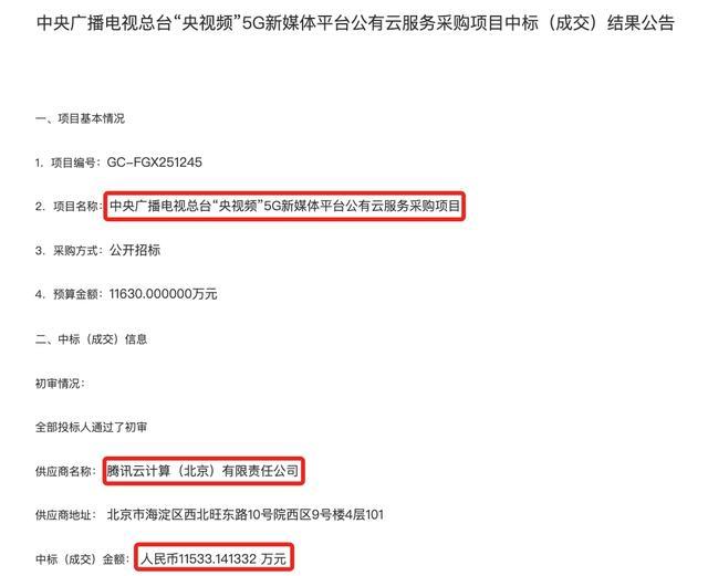 1.15亿云大单!腾讯云中标央视频5G新媒体平台项目