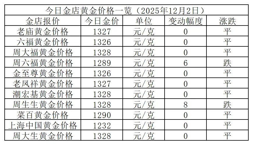 金价震荡!2025年12月2日各大金店黄金价格多少一克?