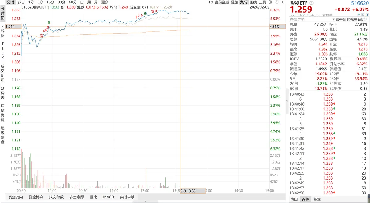 影视ETF(516620)强势上涨超6%,资金跑步进场