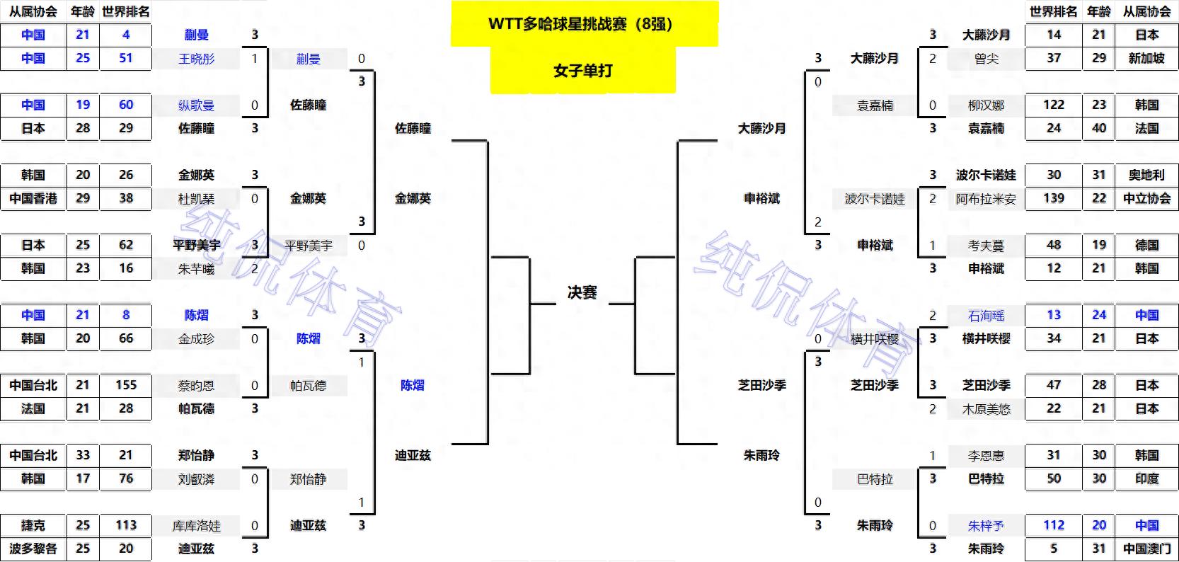 女单八强出炉!国乒参赛10人仅剩独苗;日乒3人晋级;韩国占了2席