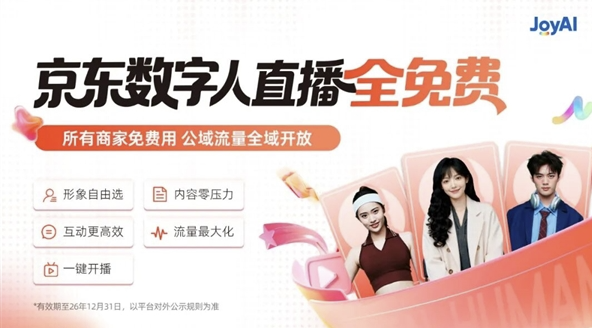 12月2日消息,今天,京东正式宣布,京东数字人直播免费向所有商家开放。