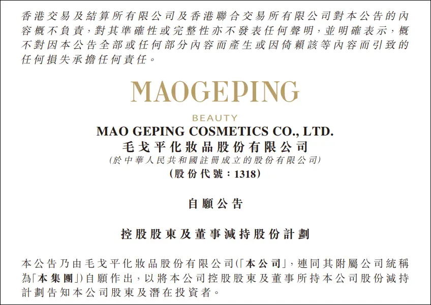 上市刚满一年,毛戈平拟减持“毛戈平”,与妻子、姐姐等将套现超13亿元!公司公告:用于投资、改善个人生活
