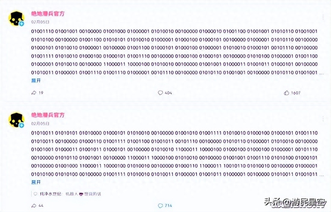 这些天,绝地潜兵们又摊上了个大事。起初,是官方账号莫名其妙发送一连串二进制代码,让许多玩家纷纷怀疑官方又在搞什…