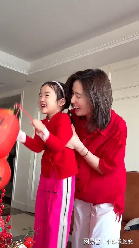 海哈金喜晒新年仪式感!穿红衣和女儿一起布置家,3岁夏夏好能干